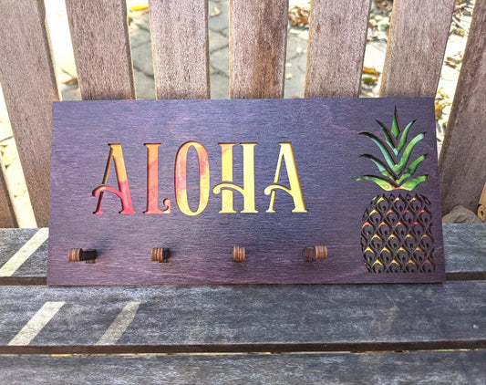 Welcome Sign Key Holder - Light Wood Laser Cut pineapple