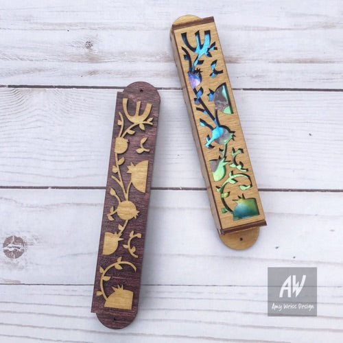 Pomegranate Laser Cut Mezuzah Light Wood - 1 inch // Bat/Bar Mitzvah Gift // Wedding Present