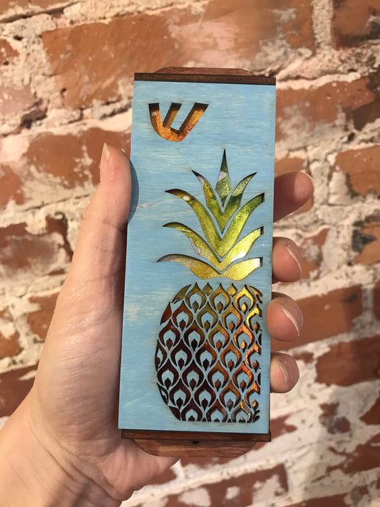 Handpainted Wooden Laser Cut Pineapple Mezuzah - Wide