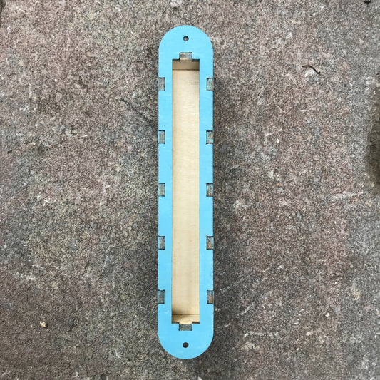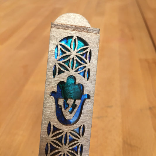 Blue Painted Wooden Hamsa Mezuzah - 1 inch